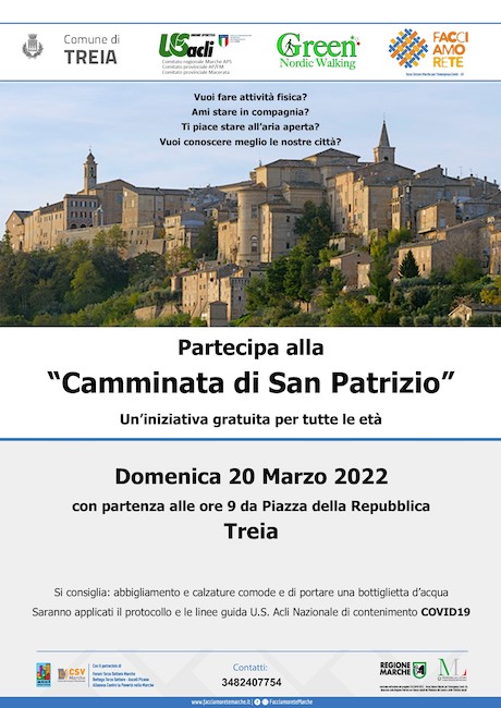 TREIA – In occasione delle festività del patrono della città, domenica 20 marzo si svolgerà la “Camminata di San Patrizio”.
