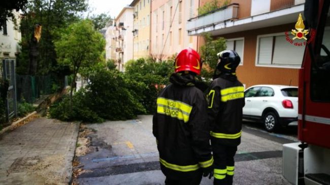 FANO – Una tromba d’aria tra Pesaro e Fano, pioggia e vento forte in provincia di Ancona, a San Benedetto del Tronto e nel Maceratese. L’improvviso peggioramento delle condizioni atmosferiche nelle Marche, con fenomeni intensi ma di breve durata in particolare sul litorale, ha reso necessari ieri molti interventi dei vigili del fuoco soprattutto per piante finite in strada e su auto.