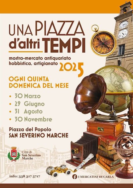 SAN SEVERINO MARCHE – Domani, domenica 31 agosto 2025, piazza Del Popolo, luogo simbolo della Città di San Severino Marche, ospita “Una Piazza d’Altri Tempi”, mostra-mercato di antiquariato, hobbistica e artigianato.