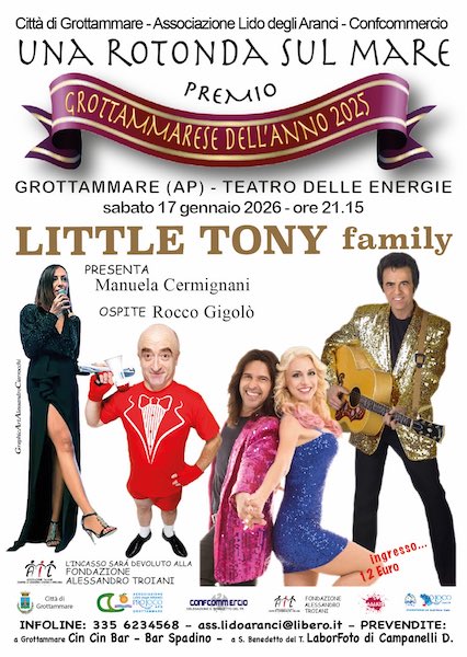 GROTTAMMARE – Sabato 17 gennaio 2026, alle ore 21.15, al Teatro delle Energie di Grottammare si svolgerà “Una Rotonda sul Mare – Premio Grottammarese dell’anno”, evento di inizio anno, che darà il via a un calendario fittissimo della Pro Loco Lido degli Aranci. La manifestazione, condotta dalla giornalista Tv Manuela Cermignani, come di prassi vede sempre un vincente connubio tra cabaret e musica.